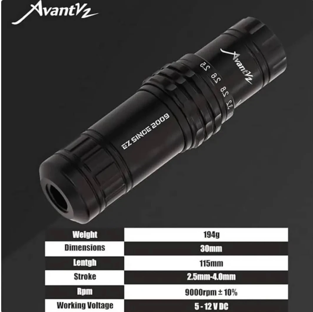دستگاه پن EZ AVANT V2 به واسطه استروک متغیری که دارد، برای هر دو نوع کار تتو بدن و آرایش دائم مناسب است. این دستگاه وزن نسبتا بالا ولی موتور بسیار پرقدرتی دارد و به همین دلیل ، عملکردی عالی را ارائه میدهد. دارا بودن استروک متغیر این امکان را به هنرمند میدهد که عمق نفوذ سوزن را بر اساس نیاز کار تنظیم کند. دستگاه همچنین با پاورهای برقی و شارژی قابل استفاده است . طراحی ارگونومیک و موتور قدرتمند این دستگاه، آن را به گزینهای ایدهآل برای کارهای دقیق و حرفهای در دنیای تتو و آرایش دائم تبدیل کرده است.